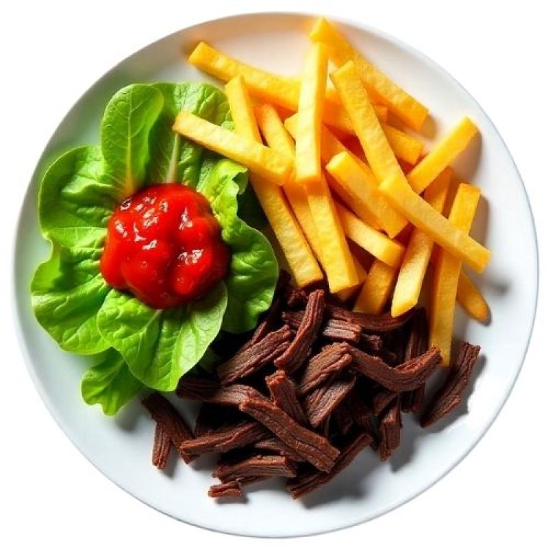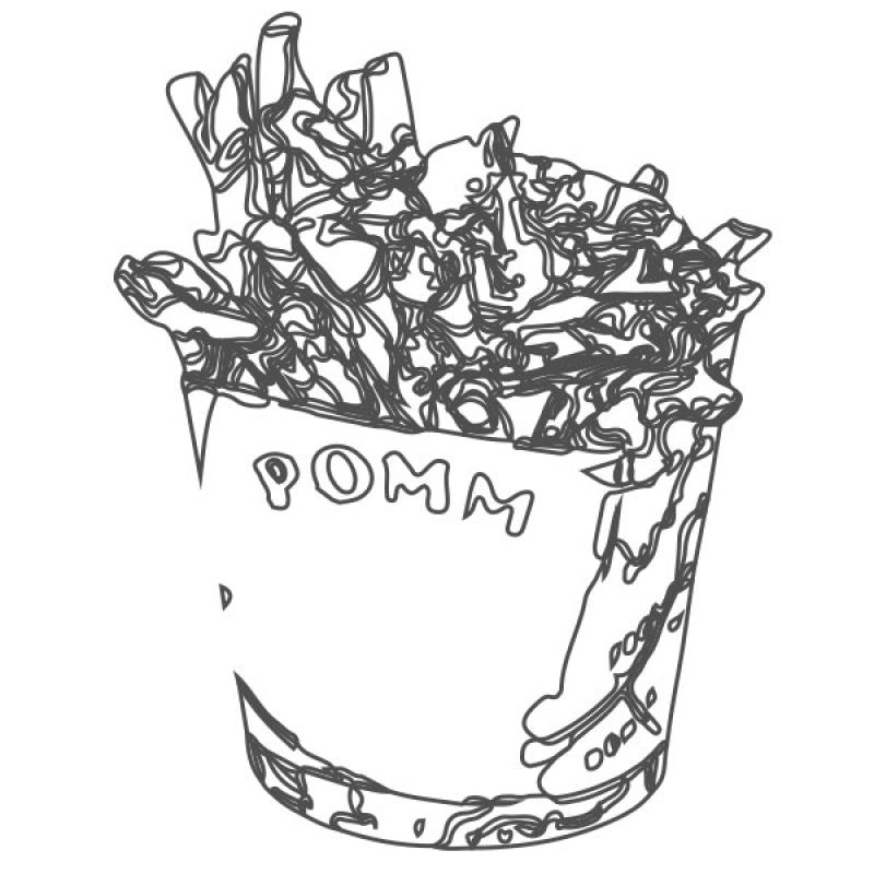 Frikandel, friet, fruitdrank, en speelgoed