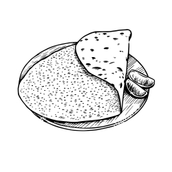 hesp, kip, champignons, uien, paprika