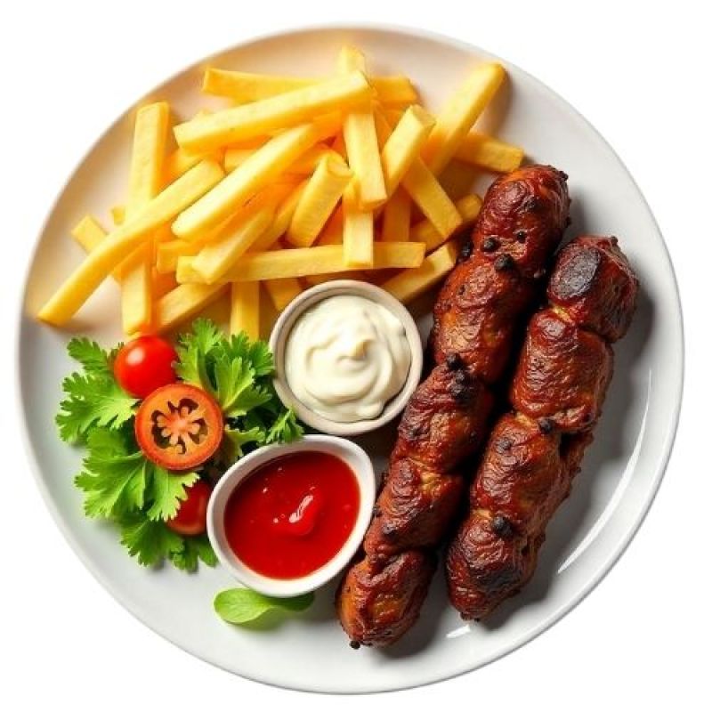 bbq saus, kebab, paprika, uien, champignons