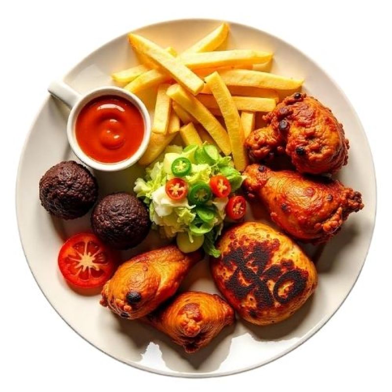 kebabvlees, kip, champignons, paprika, uien
