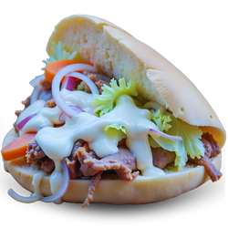 bbq saus, shoarma, paprika, uien, champignons